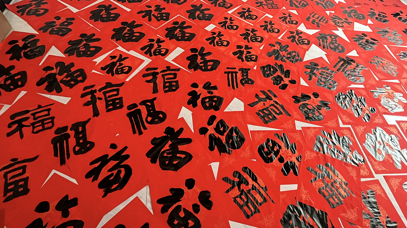 充满浓浓年味的“福”字铺满一地。田俊荣 摄