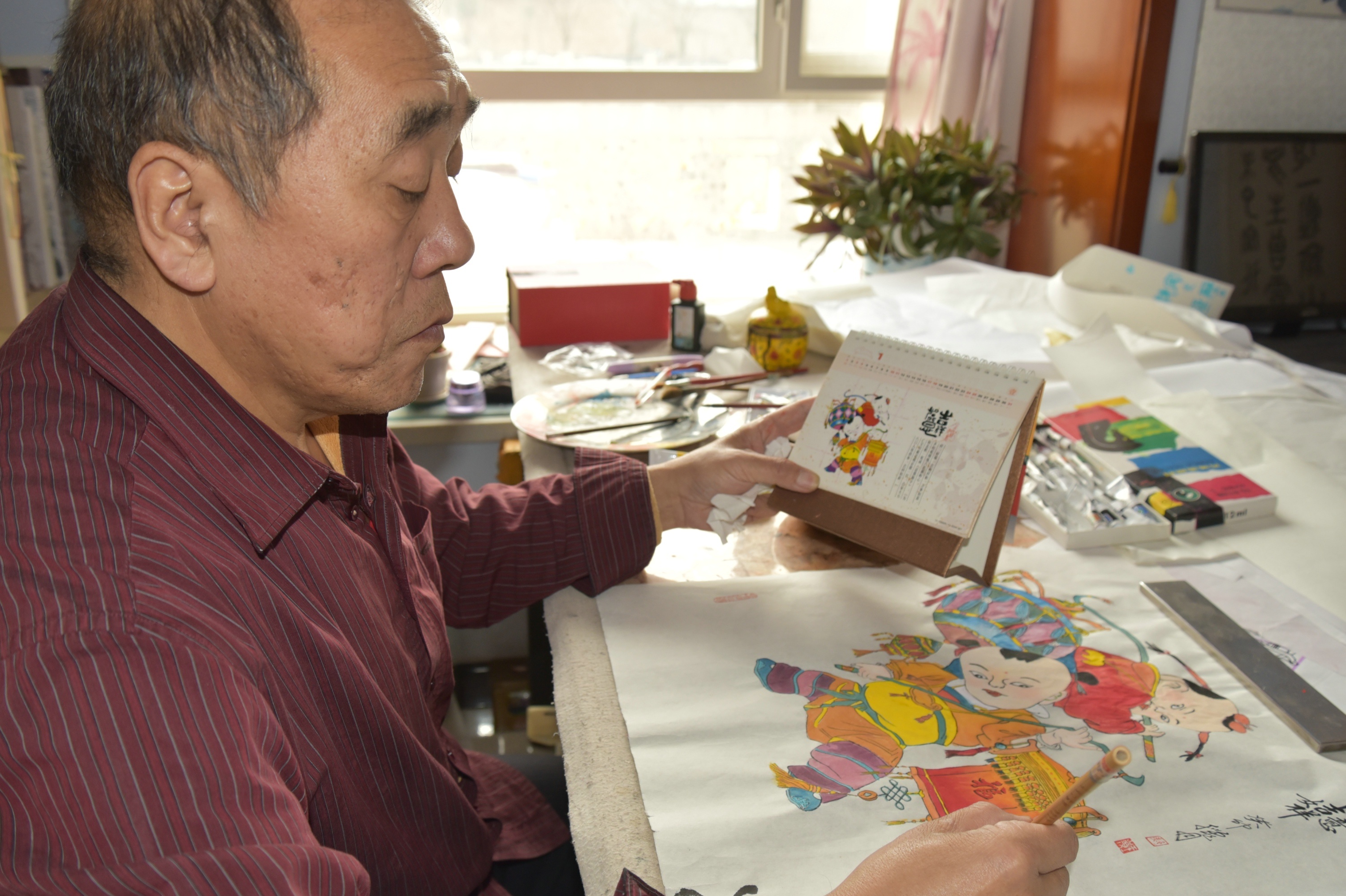 郝玉岭在创作中。院玉顺 摄