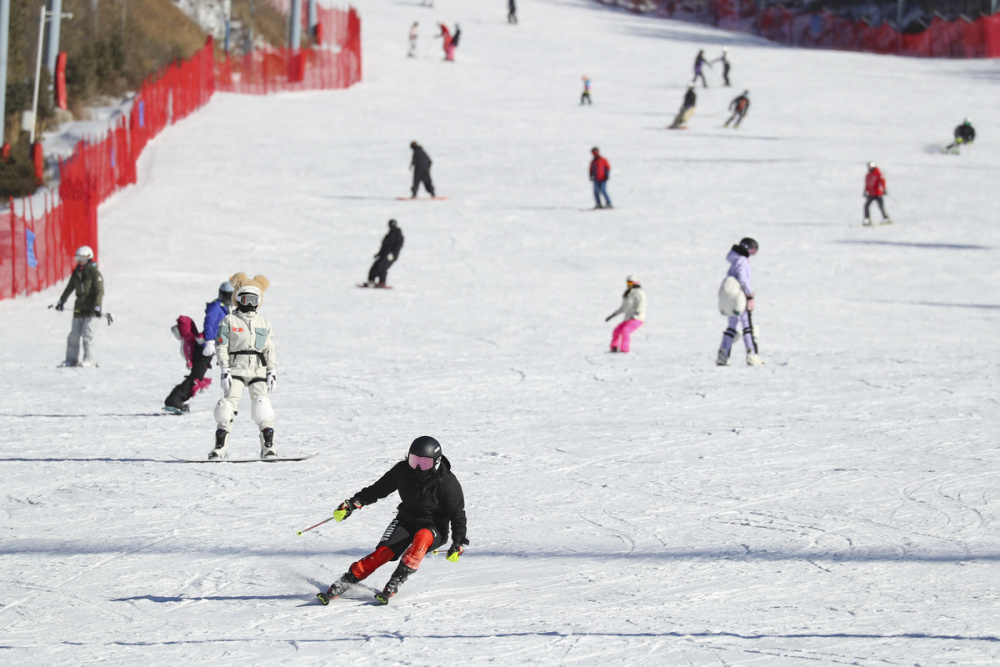 春节期间,游客在雪场享受滑雪乐趣。武殿森 摄