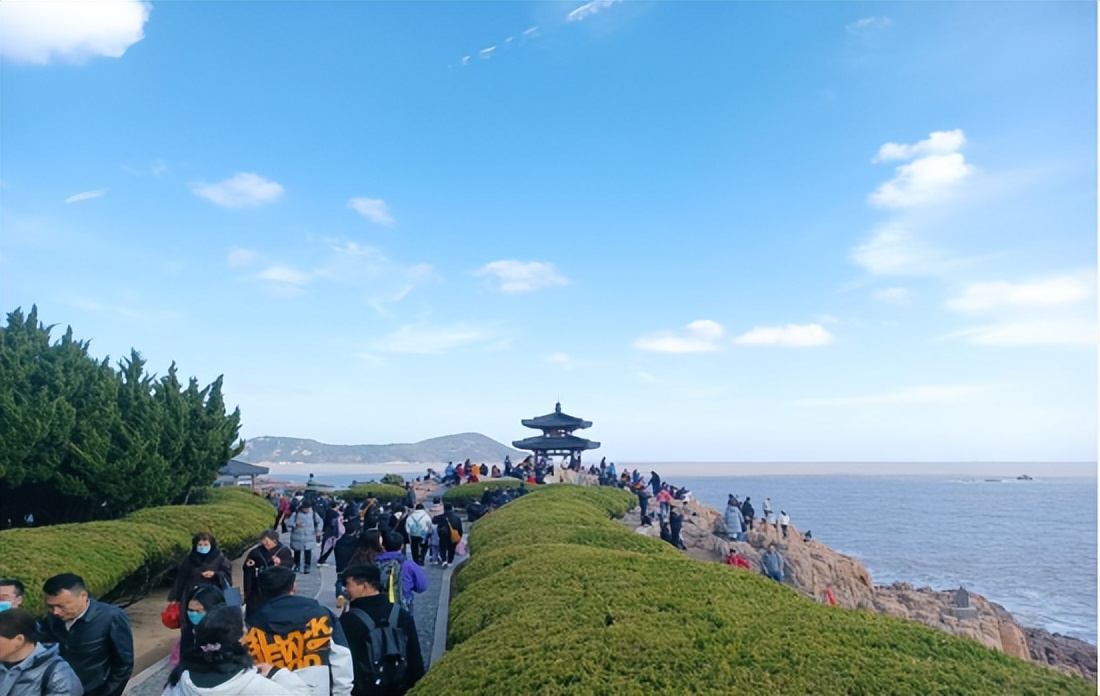 走出法雨寺,游览其它的景点。十二景中,磐陀石不能不说,别看只是叠放在一起的两块石头,是普陀山标志性景观,被称为“天下第一石”。而“二龟听法石”,背后是个动人的传说故事。说东海龙王派他的两个龟,前往探听观音菩萨讲经说法,听得入迷而不愿回宫,龙王大怒就将他们化为了石头。