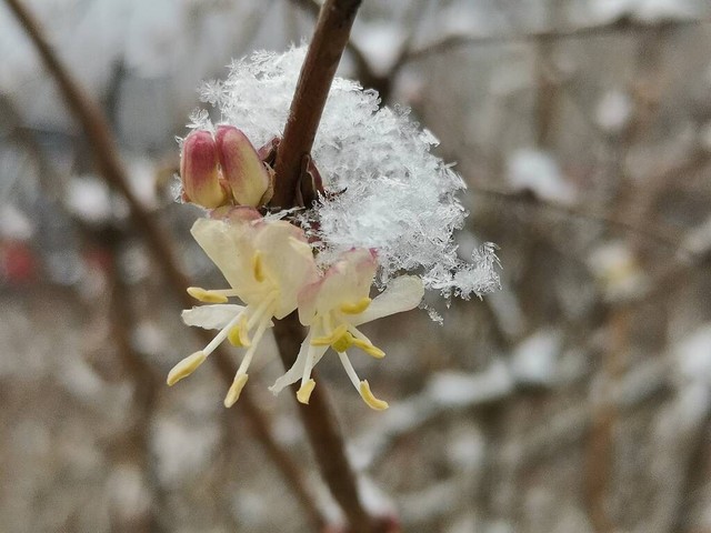 凌寒吐艳早迎春,喜鹊争鸣报喜音。