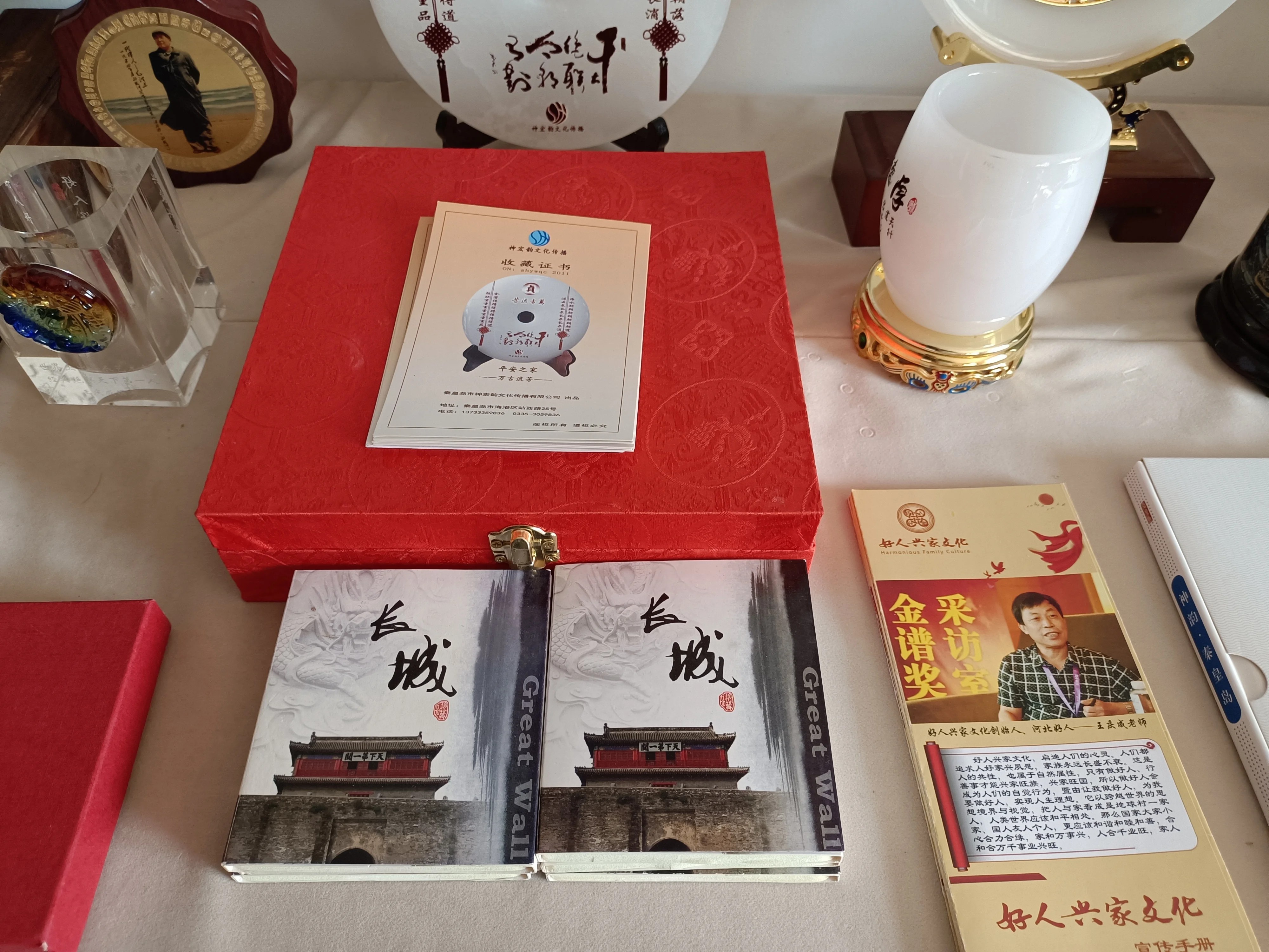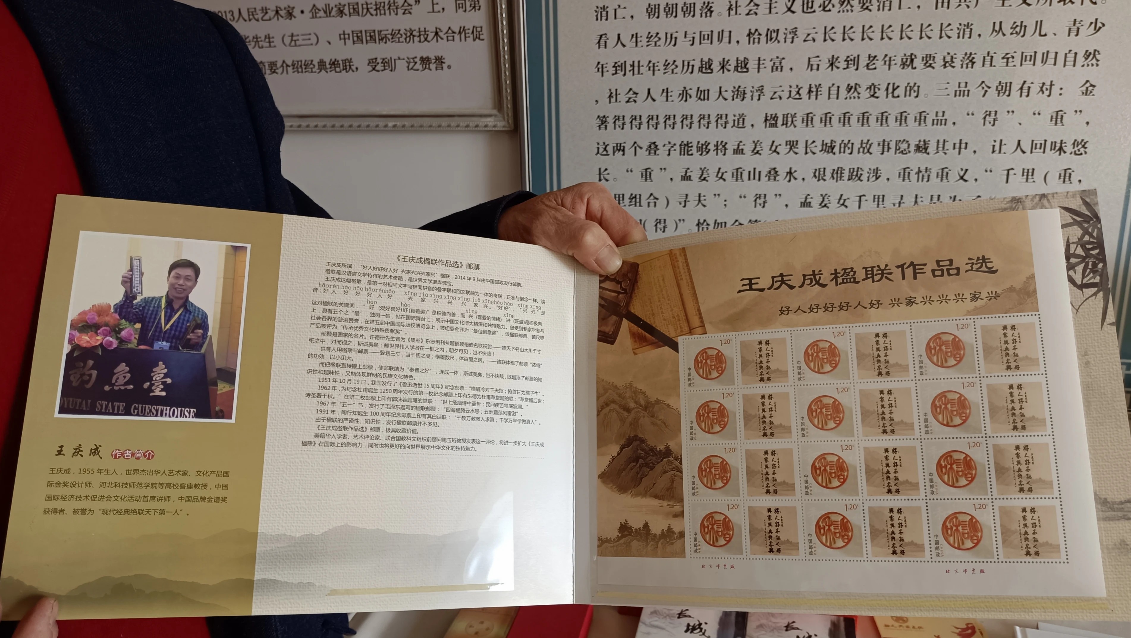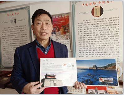 用当地金矿石雕刻的金蟾、书法用的镇纸、“日进斗金”和“金砖”摆件,用天下第一关、长寿山、北戴河风光、百年港口等地标性建筑形象设计的特色邮票,自制的文化楹联、笔筒、仿古小屏风,受古玉币启发设计的“家”“福”字的作品……很难想象,这些题材、内容丰富多样的文创作品,是69岁的王庆成利用十几年的时间陆续完成的。