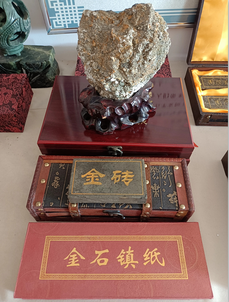 用金矿石做成的金砖和镇纸。