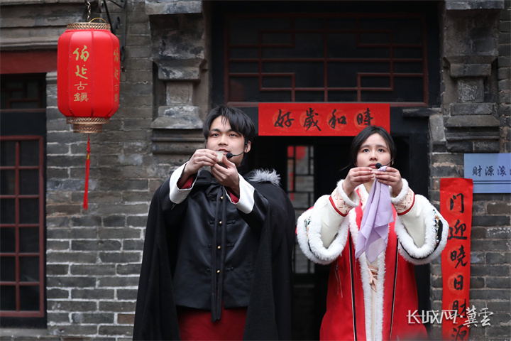 春节期间,大型沉浸式实景演出《商帮归来》在河北省武安市伯延古镇精彩上演。演出以伯延古镇内精美的明清古建筑为舞台,融汇歌舞、情景剧等元素,串联起五架小车闯关东、苏州武安会馆成立、徐府大婚等一个个武安商帮的历史故事。