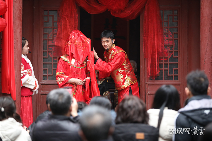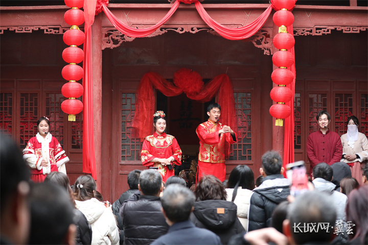 武安市伯延古镇《商帮归来》演出现场,演员再现徐府大婚场景。长城网·冀云客户端记者 孟维仑 摄