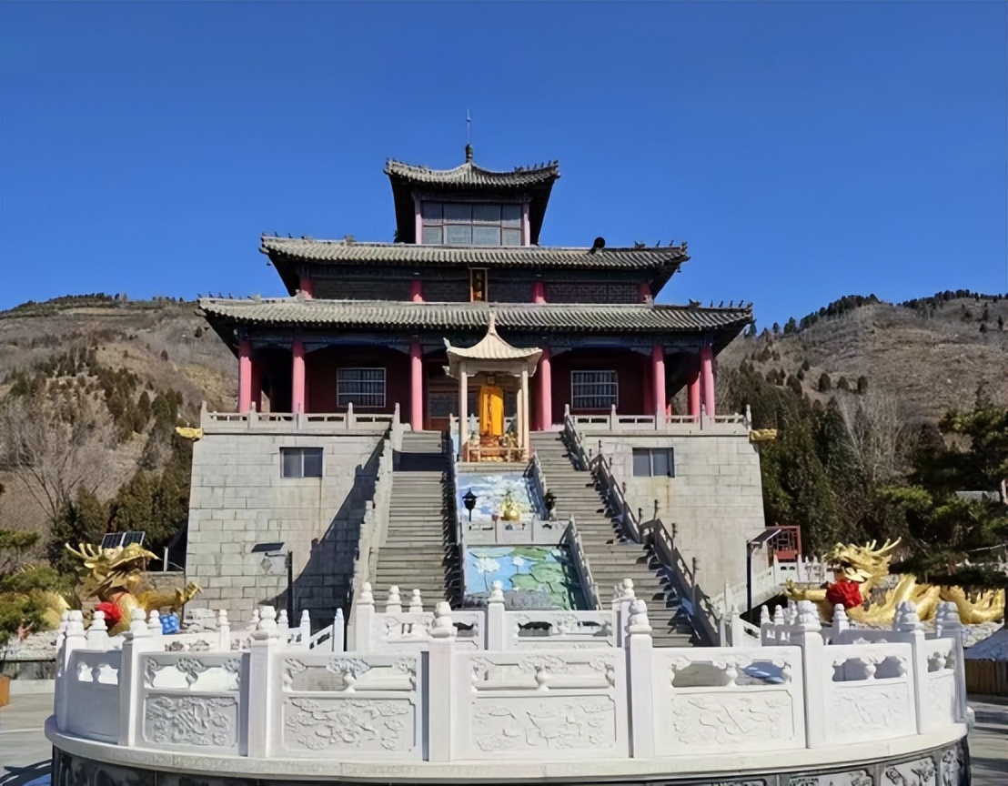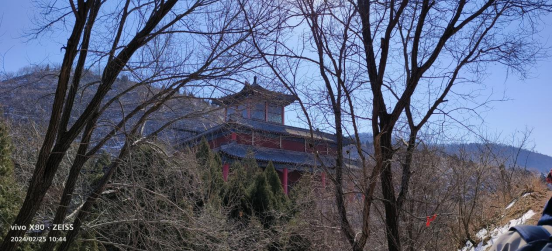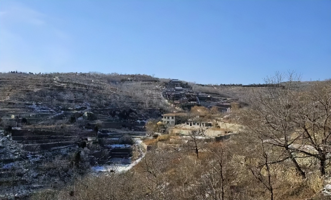 众驴下了垭口,沿着水泥路继续下山。转过山来,山坳里的合龙寺观音阁便露出了其巍然的雄姿。