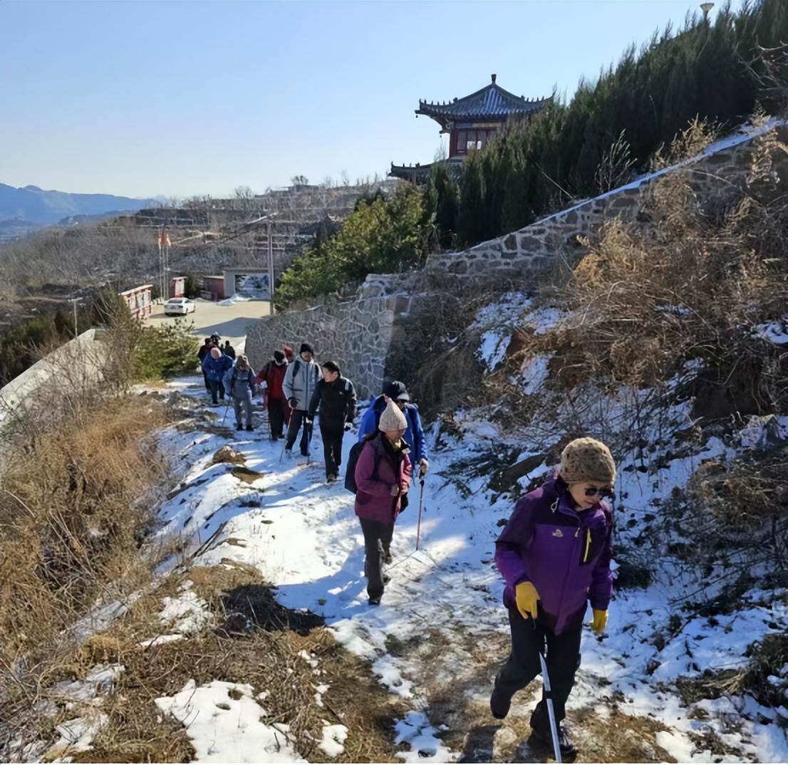 离开月牙寺,从寺院西侧上山,至山顶,有许多的积雪尚未融化。大家踏着积雪,听着脚下发出的“咯吱、咯吱”的天籁之音,也怪有趣。