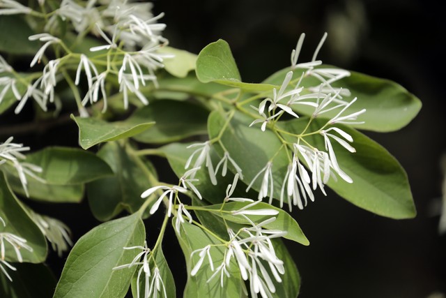 “流苏”亦名罗雪,又叫茶叶树、乌金子、萝卜丝花和牛筋子。还有一更好听的名字叫“四月雪”。它树形高大优美,树干的身躯千姿百态,像舞者扭动出的舞姿而蕩人心弦。