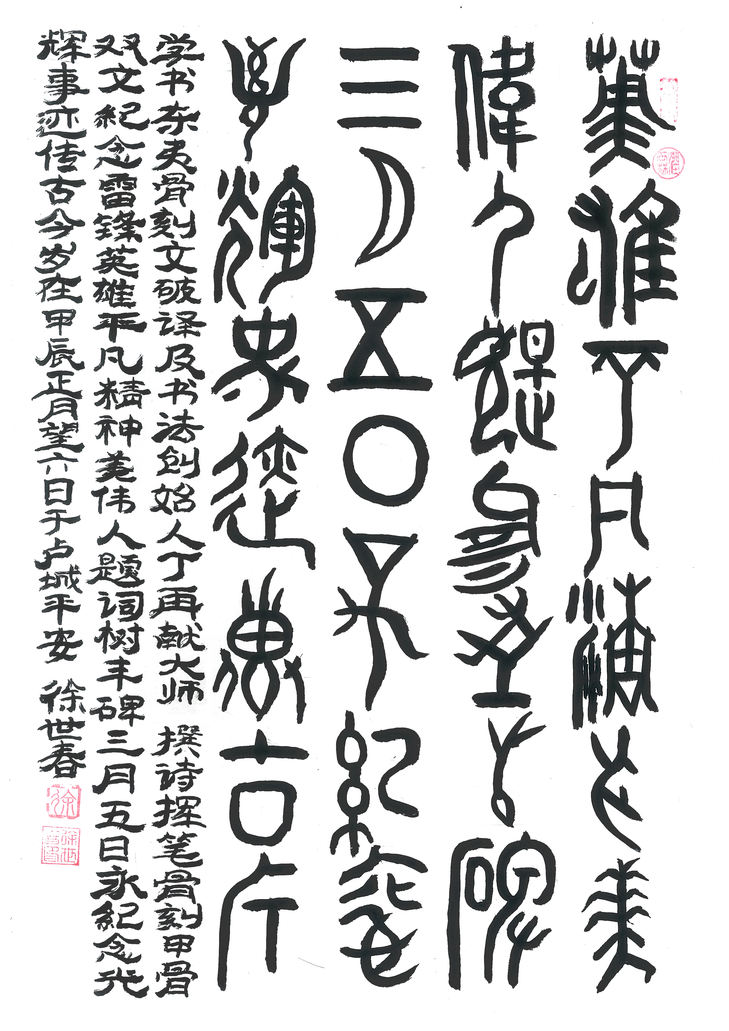 拜师丁再献大师学书•并用东夷骨刻文和甲骨文双骨文集字撰诗纪念雷锋