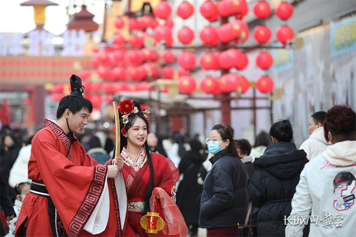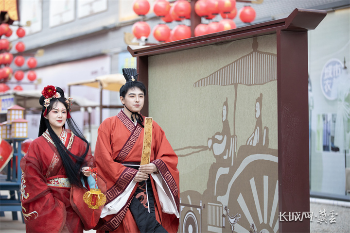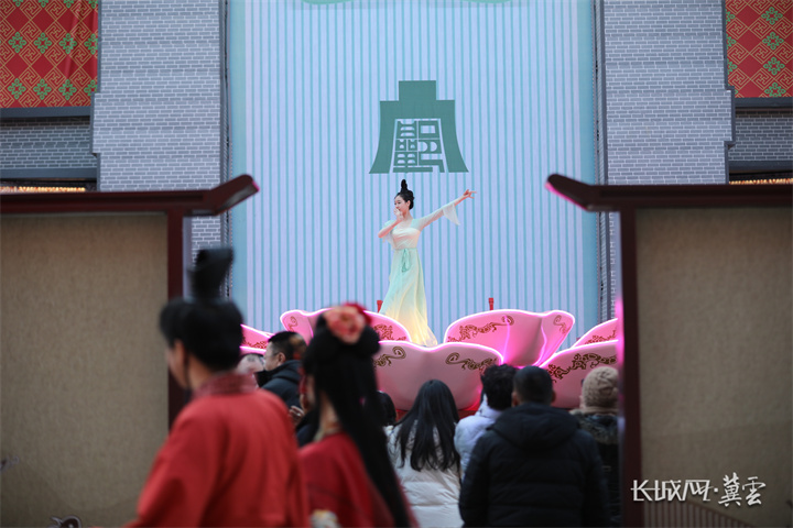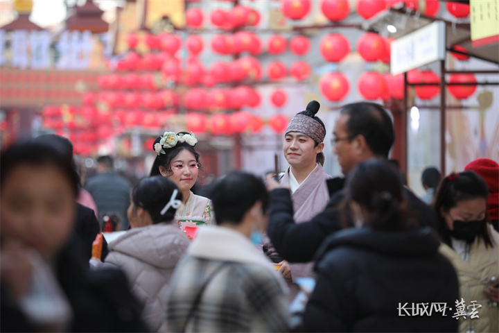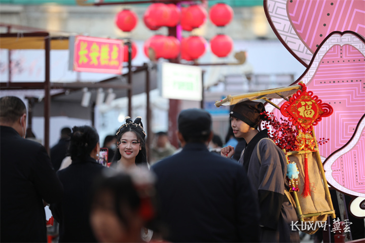 逛灯会、品小吃、看情景剧……春节期间,在河北省武安市南关街不夜城,灯光下的赵国盛世、赵王婚礼、邯郸学步等燕赵文化实景演出,让人恍如隔世,游客尽情在不夜城打卡、拍照,感受年味十足的古城繁华景象。