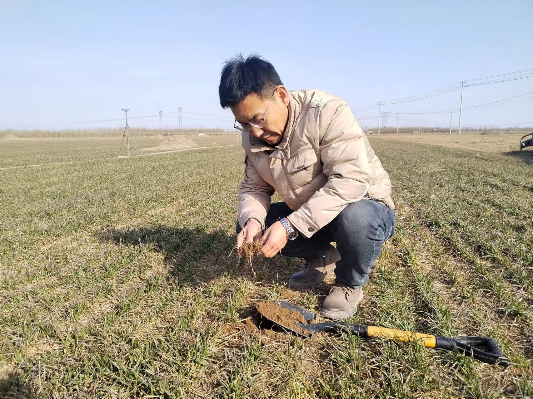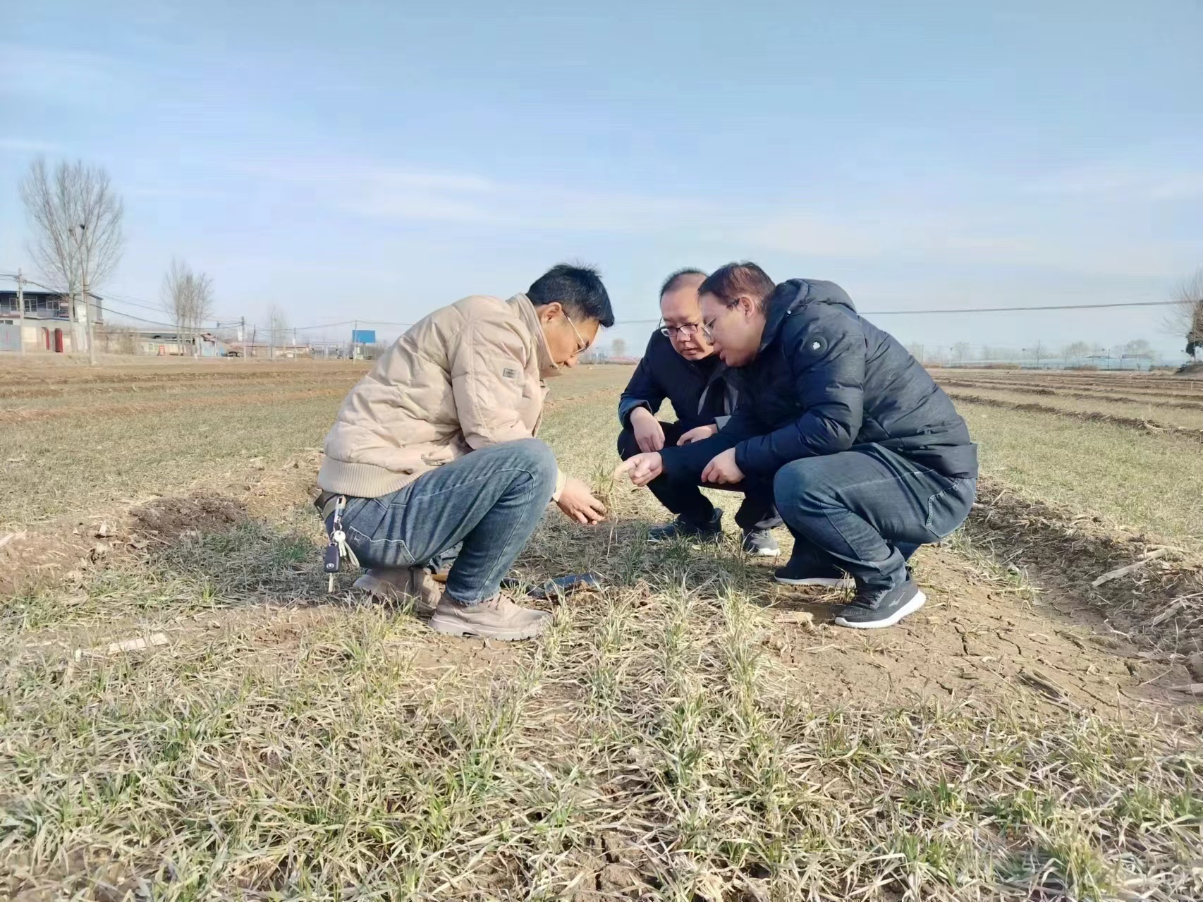农技人员深入田间地头,开展小麦苗情、墒情、病虫情调查。涞水县农业农村局供图