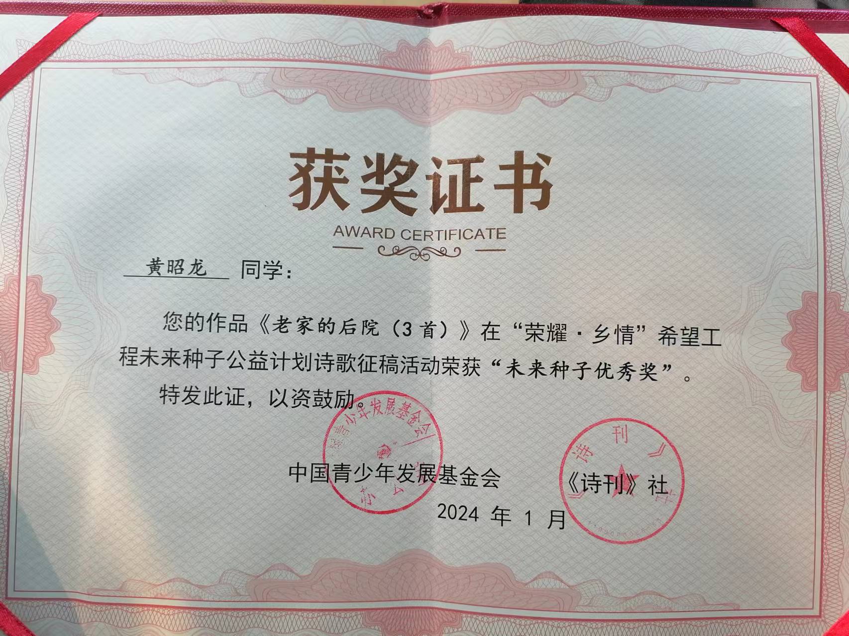 黄昭龙(11岁,蒙古族,海南省作家协会、中国诗歌学会、中国散文学会、中国少数民族作家协会会员)