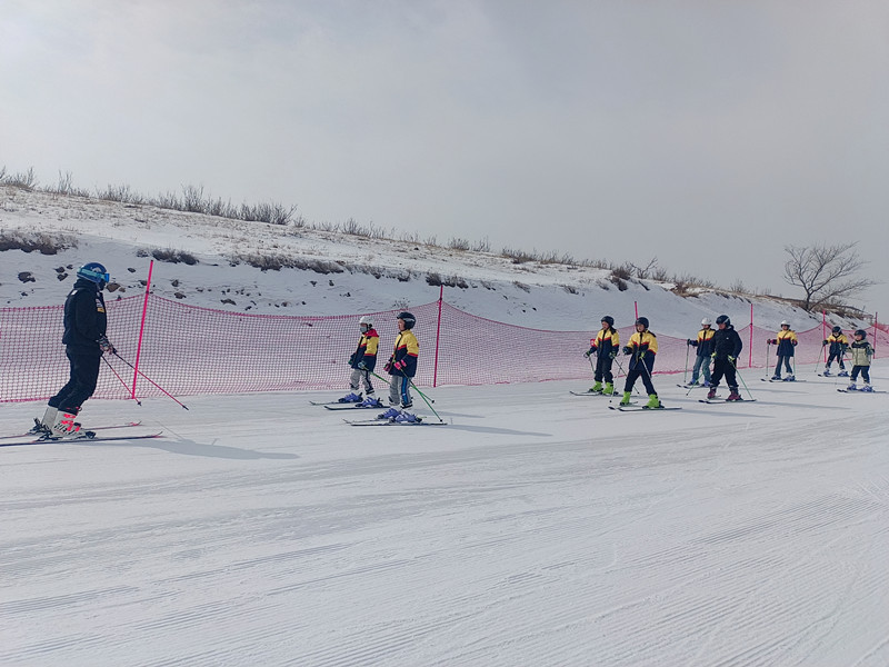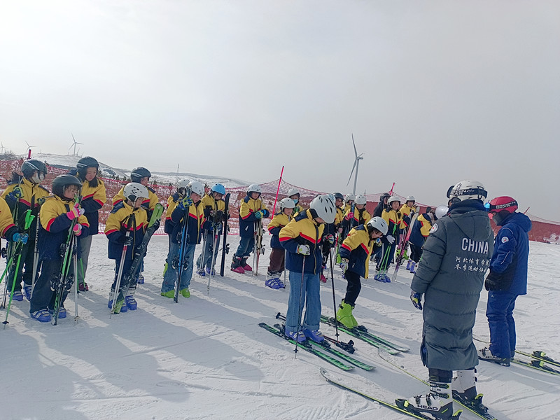滑雪场上,参加活动的学生在专业滑雪教练的指导下,佩戴好专业护具和雪具,做热身活动,学习蹬板、雪地站姿等技术动作……经过一次次练习,学生们在滑雪场上不断挑战难度、超越自我,用热情和欢笑嗨翻雪场。