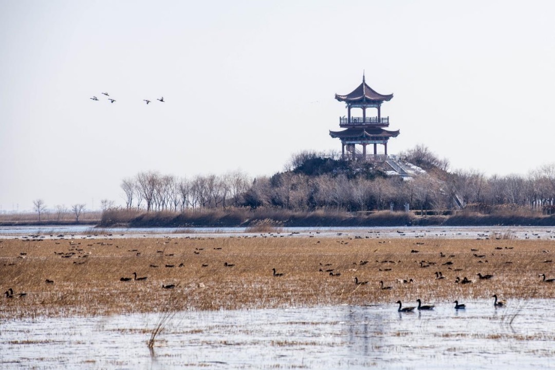 灰雁与观鸟亭交相映衬,充满了和谐与宁静。沈新生 摄