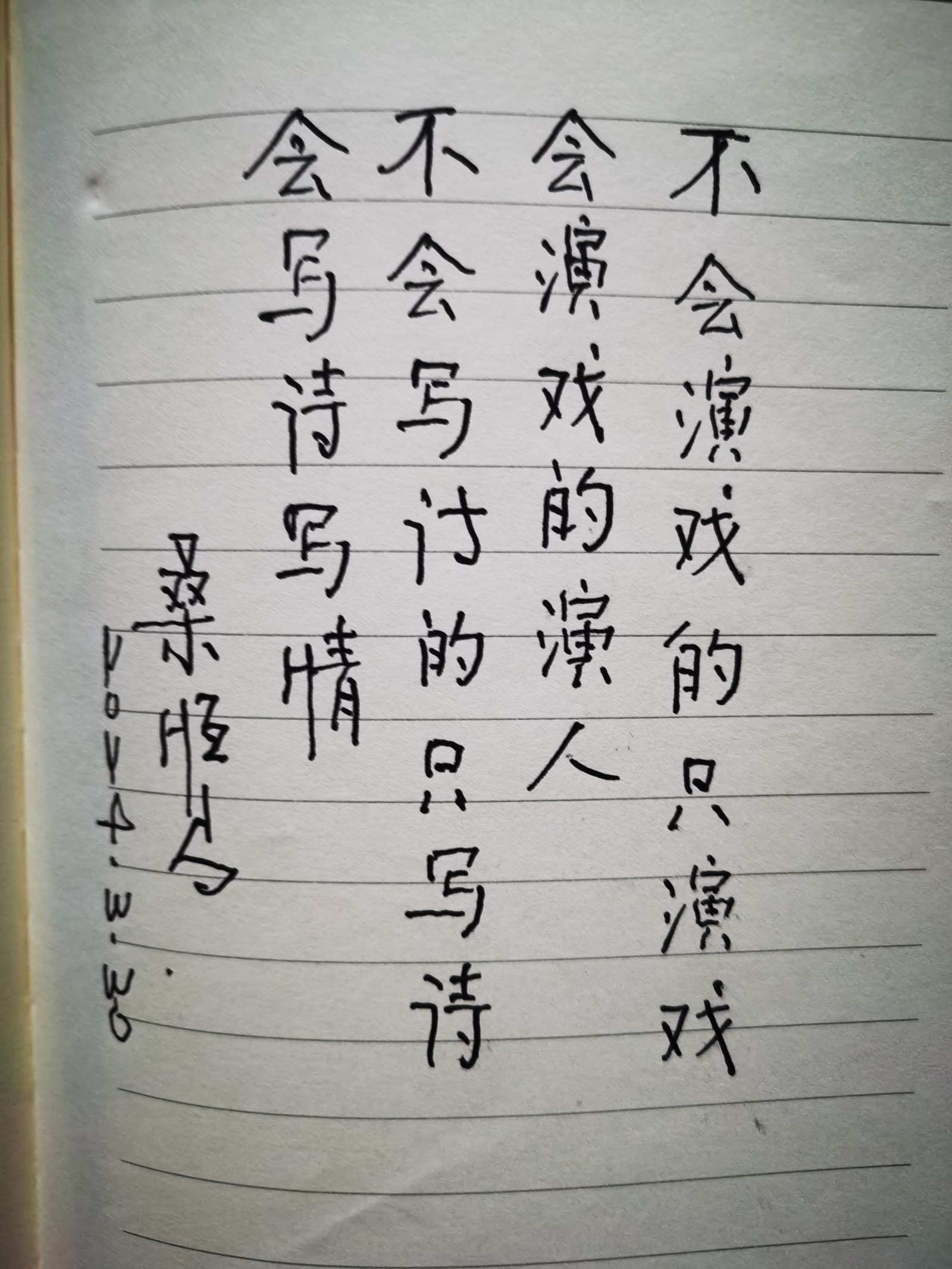 不会演戏的人只演戏,会演戏的演人;不会写诗的只写诗,会写诗的写情。