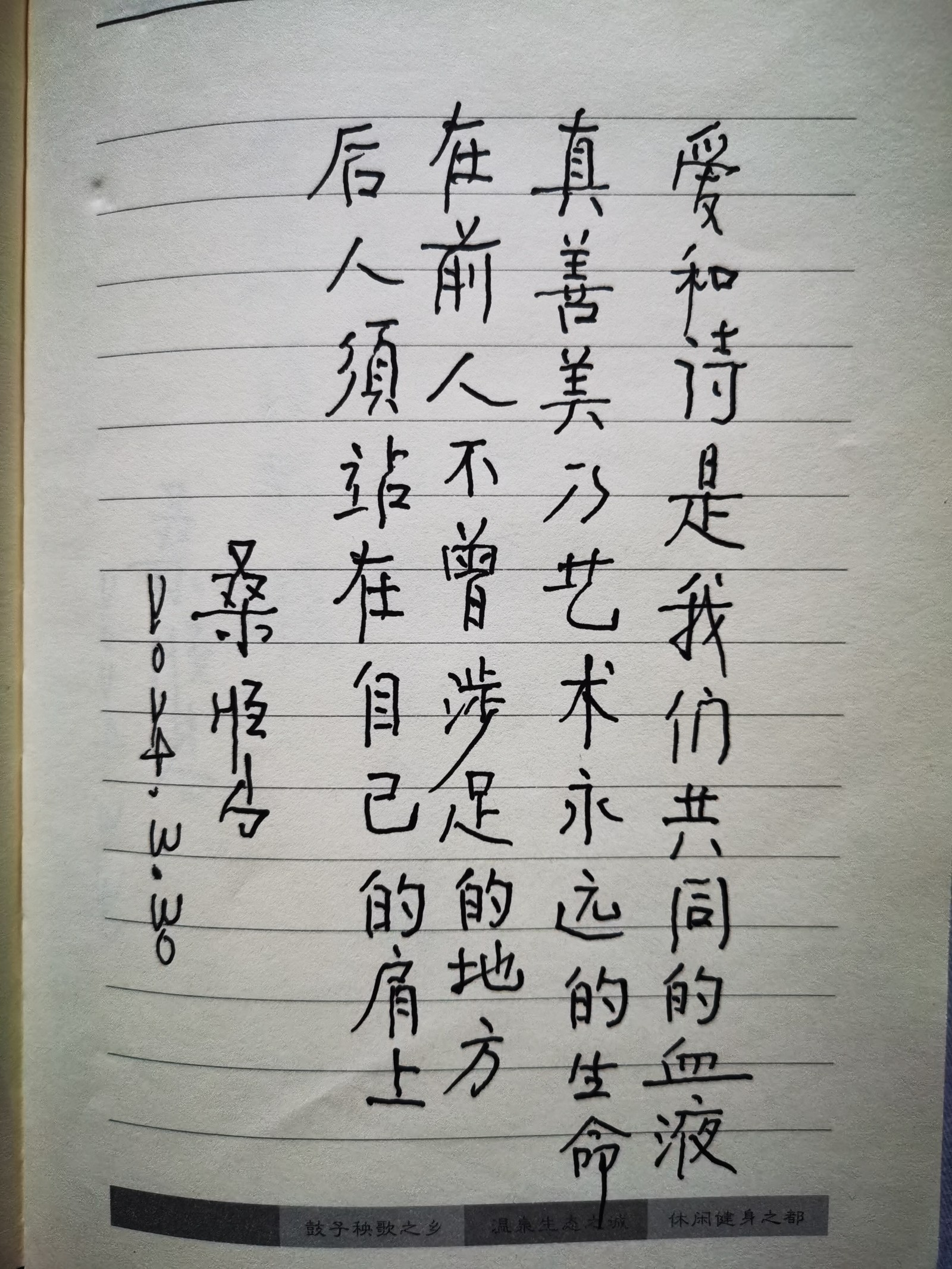 爱和诗是我们共同的血液,真善美乃艺术永远的生命,在前人不曾涉足的地方,后人须站在自己的肩上。