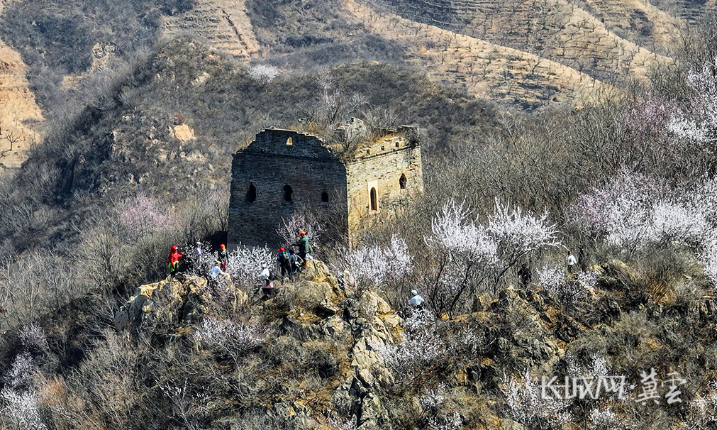 近日,河北省迁西县金厂峪镇榆木岭长城附近的山桃花悄然开放,古长城在花海的映衬下宏伟壮观,美景如画。