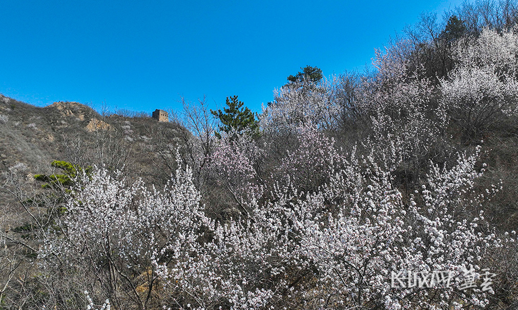 近日,在河北省迁西县金厂峪镇榆木岭长城拍摄的春景。