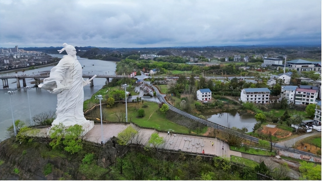 “何处望神州?”辛弃疾仗剑持卷的高大雕塑屹立铅山信江江畔,北望中原。