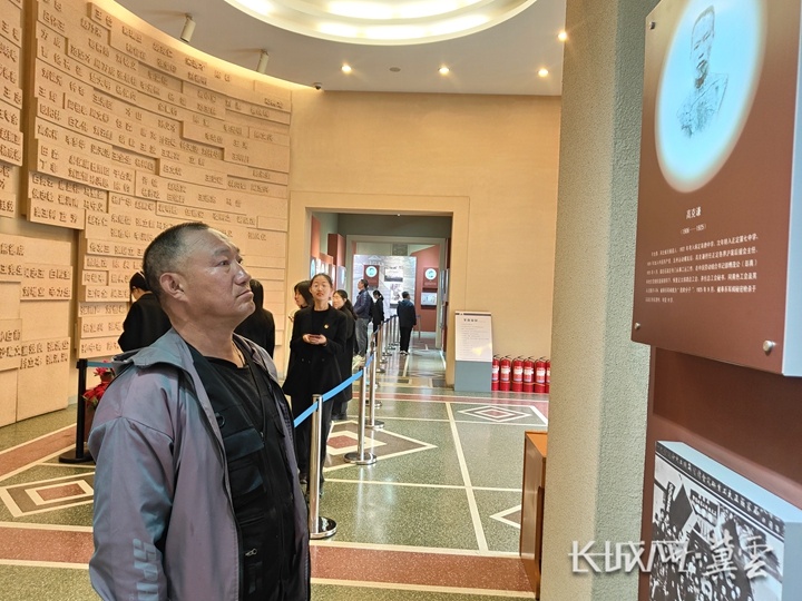 高翠民在华北军区烈士陵园纪念馆,参观伯父高克谦的历史展牌。长城网·冀云客户端记者 周亚彬 摄