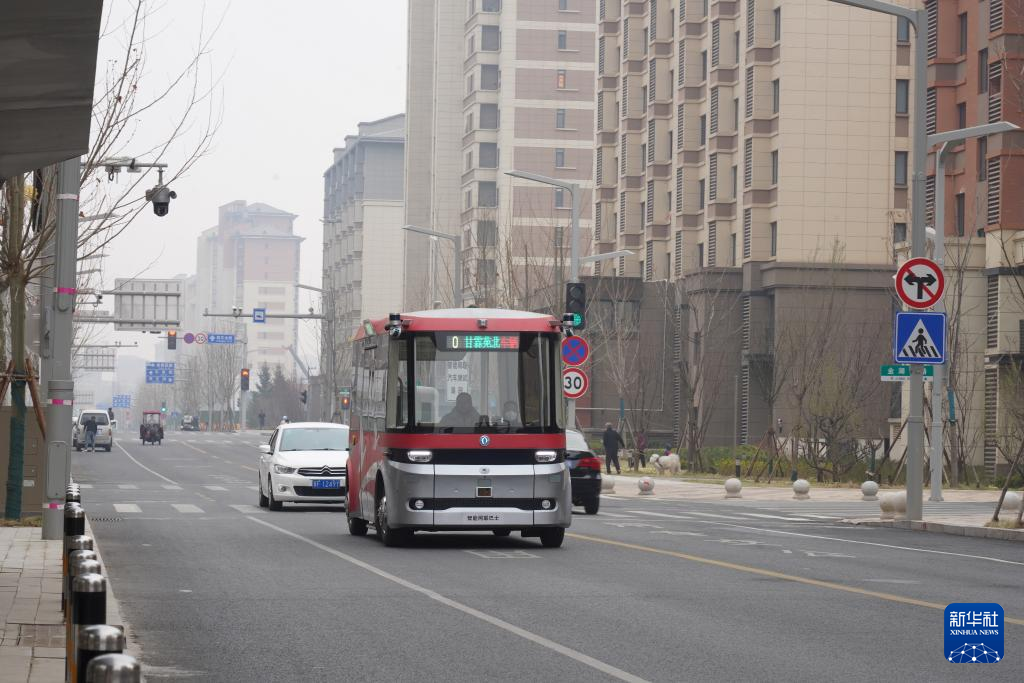 2023年3月20日,智能网联巴士在雄安新区容东片区道路上行驶。新华社记者 杜一方 摄