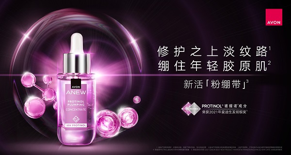 对此,雅芳通过深入研究成功推出黑科技成分“玻提诺³”,可以同时促进这三种不同类型的胶原蛋白,突破胶原焕活局限,实现肌肤多方面改善。此项创新不仅荣获了2021年爱迪生发明奖护肤类银奖⁵,更被誉为“改变游戏规则”的伟大发现,也使得Avon雅芳在科技护肤领域脱颖而出。