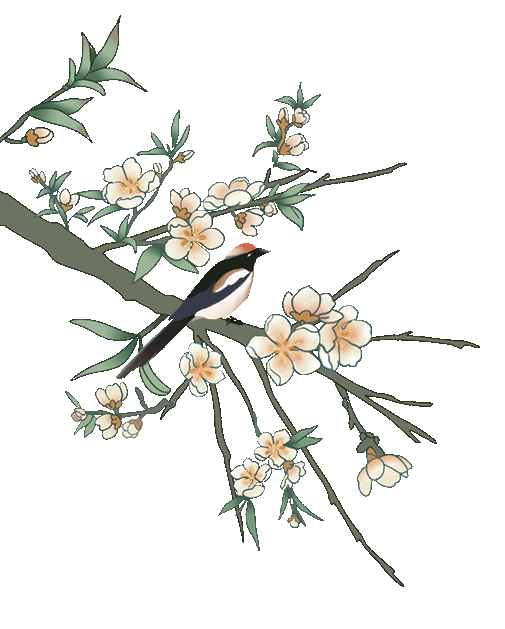 杏色探枝俏,梅花照眼明。