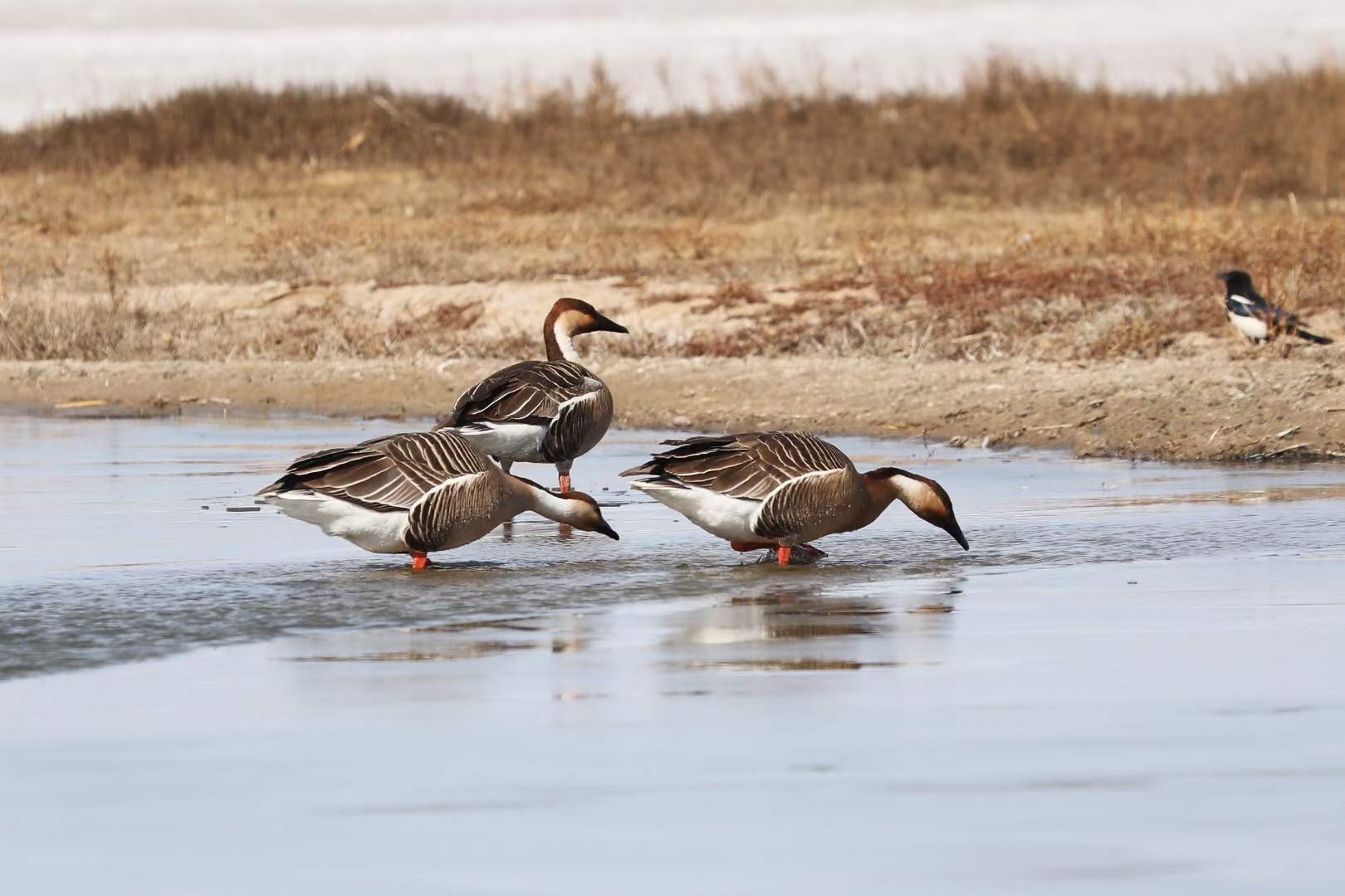 鸿雁在觅食。