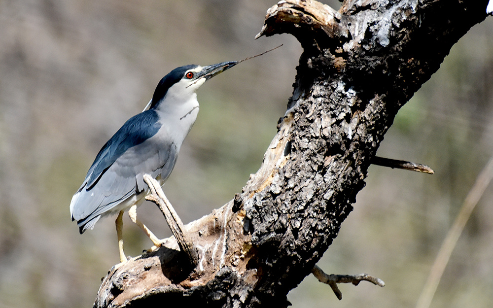 一只夜鹭在寻找适合筑巢的树枝。陈晓东 摄