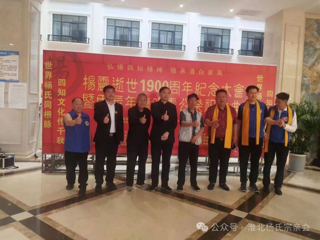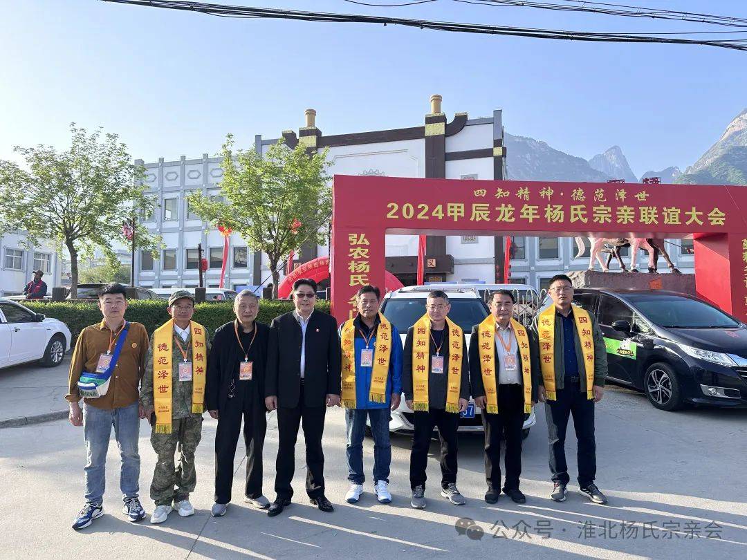 ▲淮北杨氏宗亲在2024甲辰龙年纪念杨震活动现场留影。自左至右依次为:杨龚、杨正新、杨广金、杨杰、杨忠敏、杨露露、杨殿成。