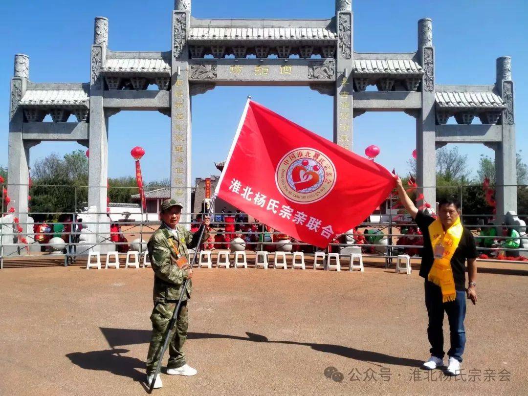 ▲活动现场,淮北杨氏宗亲会会旗招展(右二)