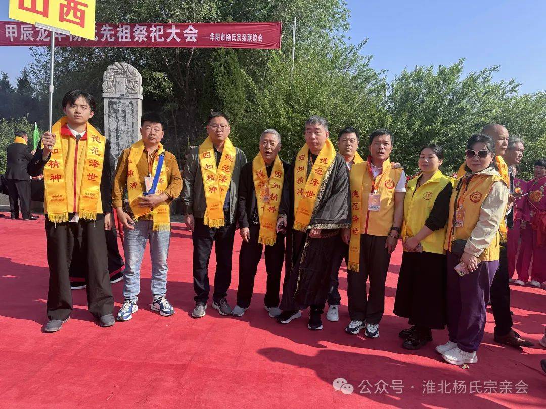 2024年全球杨氏清明祭祖大典于4月10日至12日在陕西潼关隆重举行。受中华文化促进会四知文化研究会邀请,淮北杨氏宗亲联合会领导架构成员杨龚、杨正新、杨露露、杨忠敏、杨广金、杨杰、杨殿成等一行7人,先后参加了2024(甲辰)年公祭杨震公系列活动。活动以“四知精神 德范泽世”为主题,举办主题讲座、文艺演出、项目推介、杨氏后裔缅怀先祖、传承优良家风等系列活动。