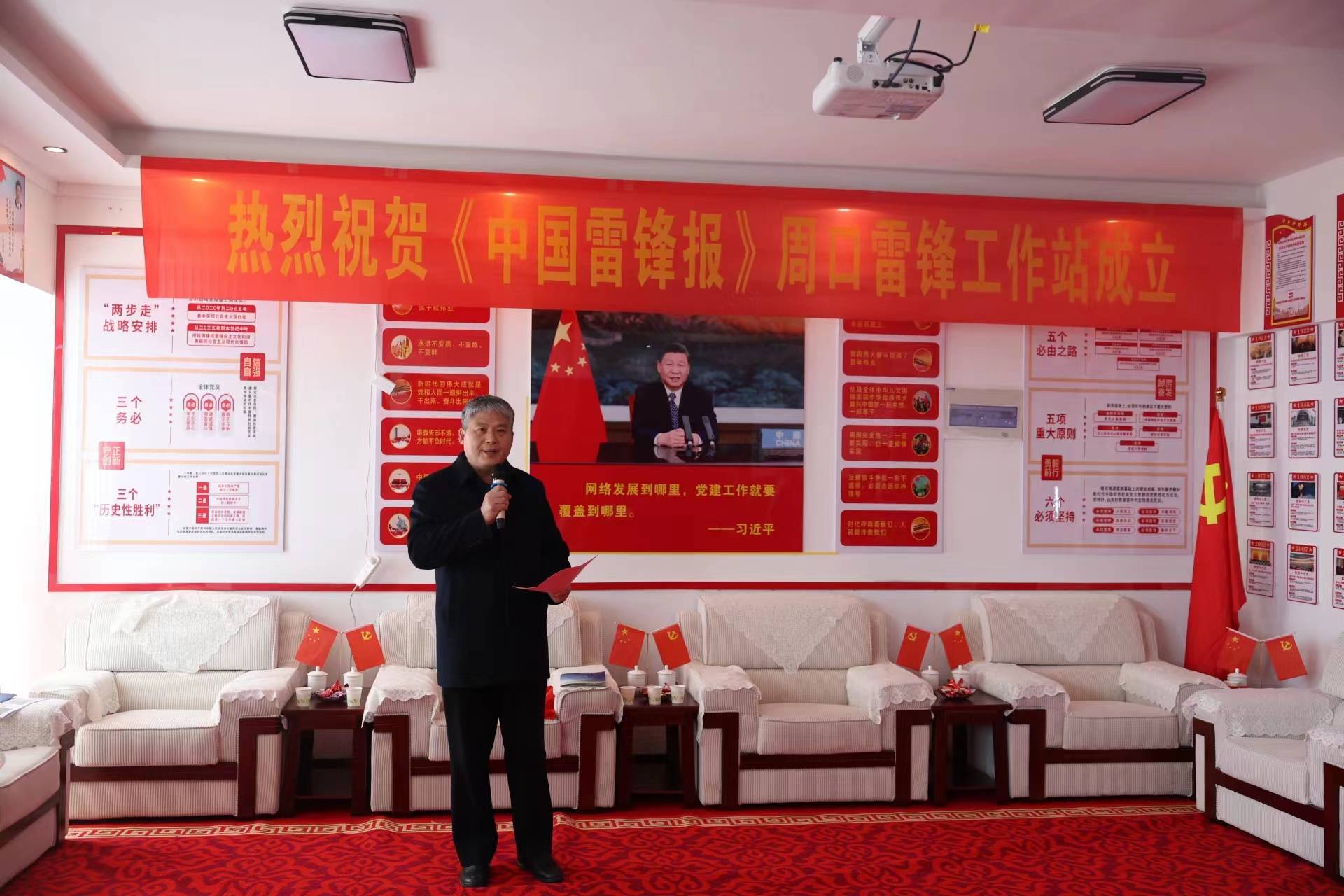雷锋同志,作为我们伟大时代的精神楷模,他的事迹和精神是我们每一个人都应该学习和传承的宝贵财富。今天,在周口这片热土上,成立雷锋工作站,就是要继承和发扬雷锋同志“全心全意为人民服务”的优良传统,让雷锋精神在新的历史时期焕发出更加耀眼的光芒。