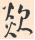 任俊伟先生让我书写“欻”字,给我出了个难题,该字,左边有上下两个“火”字,右边一个“欠”字,笔画左边多,右边少,如何写?我记得颜真卿、欧阳通用楷书写过此字: