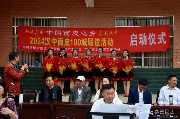 4月20日中午,号称中国面皮之乡第一村的南郑区新集镇罗堰村委院内,数百村民和南郑民间文艺队汇聚一堂,参加2024中国面皮之乡百城面皮人联谊活动启动仪式,为他们启动的百城面皮人联谊活动助阵。