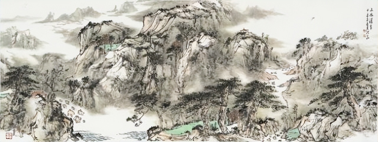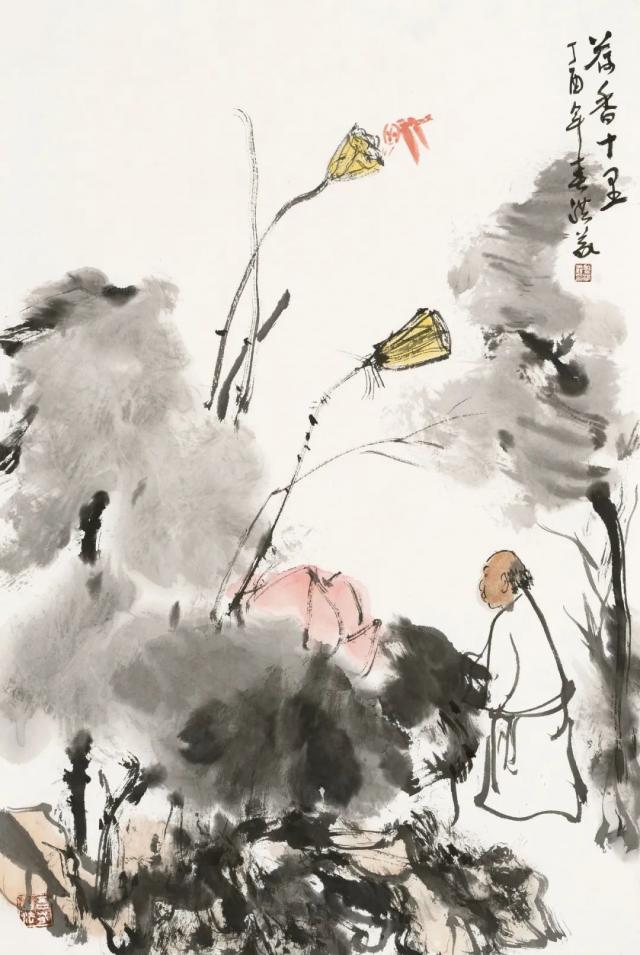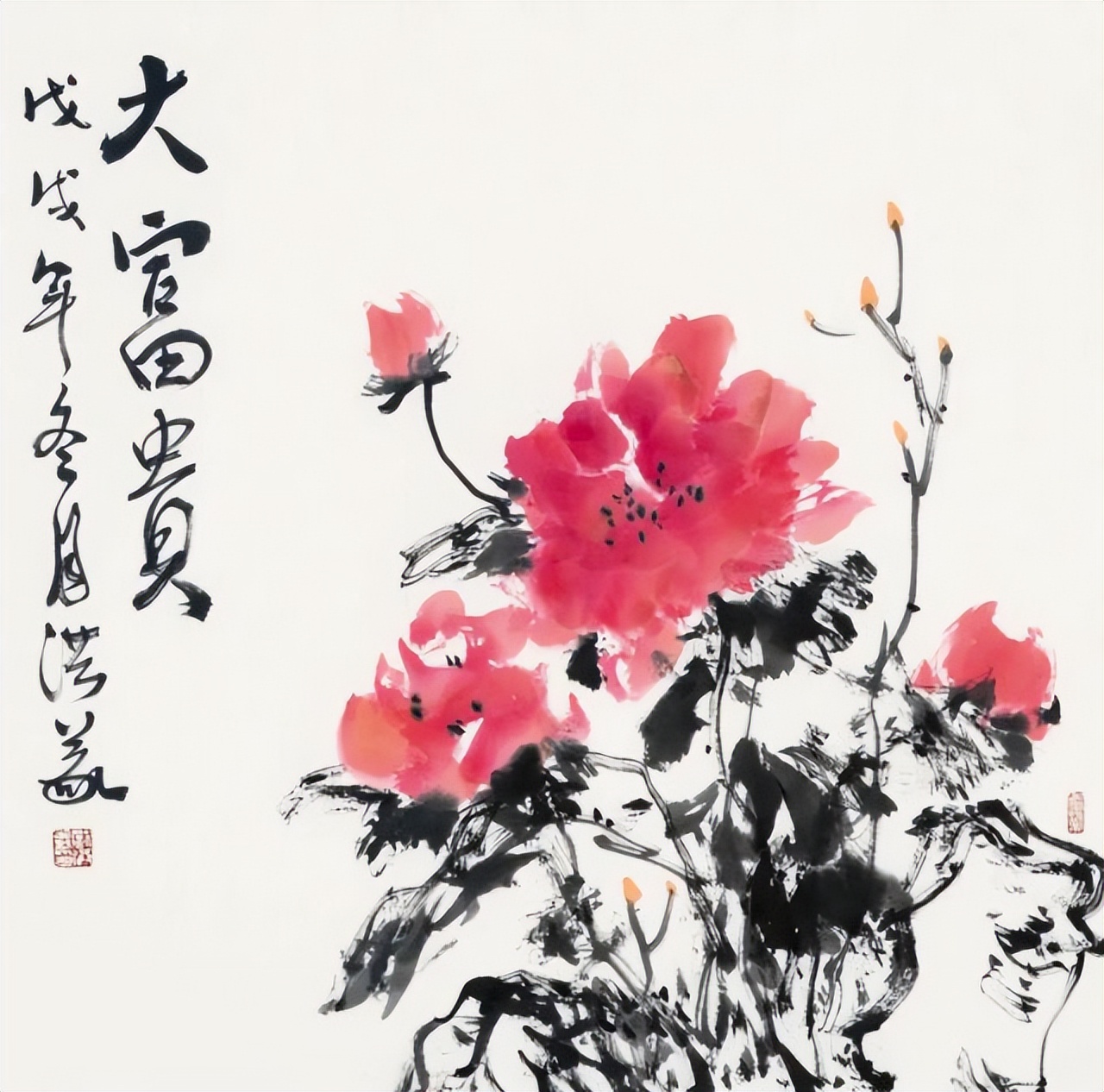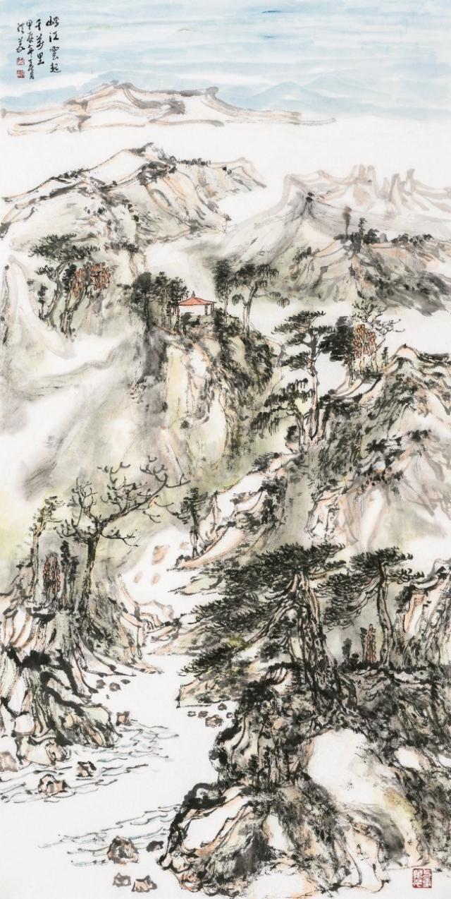 盛洪义主要是画家,他的山水画得相当好,有文人画风,洪义的山水独树一格,在当代,特别是青年画家中是很杰出的。他不单纯画山水,人物、花鸟都能画,都有自己的风格。我是比较喜欢洪义的画,每当见到他的画,我总喜欢题上几个字。