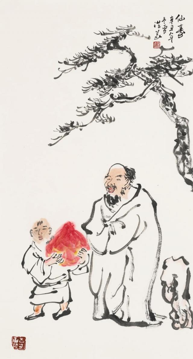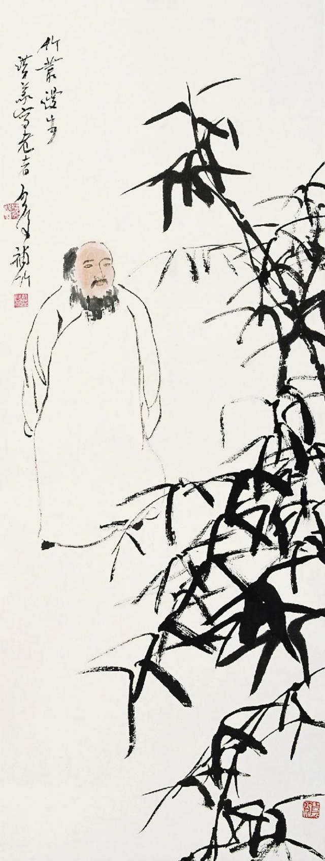 《竹丛漫步》洪义写老者启后补竹,93cm×35cm