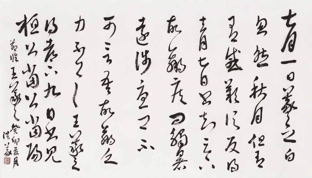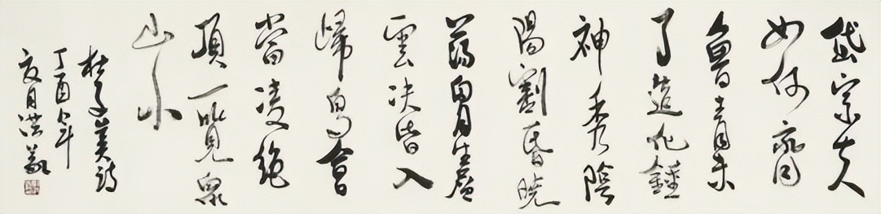 我认为,盛洪义完全可以书画并进,他不会独立地画画或专写书法。书画同源,洪义这里不仅是同源的问题,最后的结果是书画连在一起。