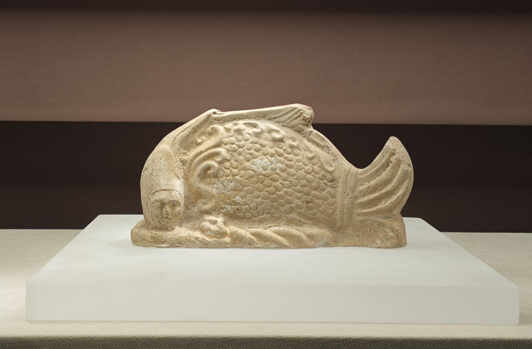 3月20日,冀州博物馆内的卧式人面鱼形陶俑。河北日报记者 史晓多 摄