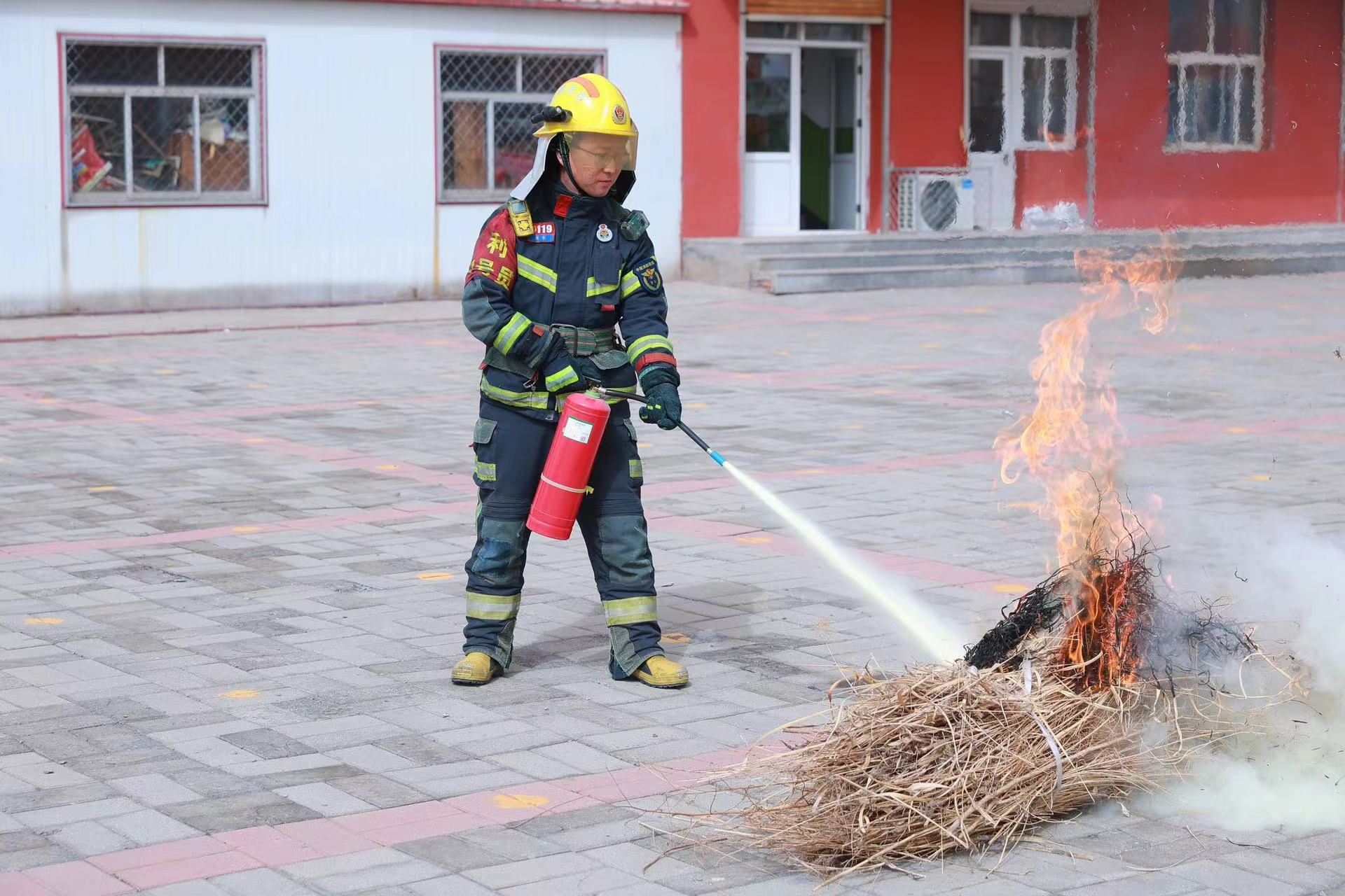 随后,消防人员为师生演示了灭火器的正确使用方法,确保他们掌握基本灭火技能。