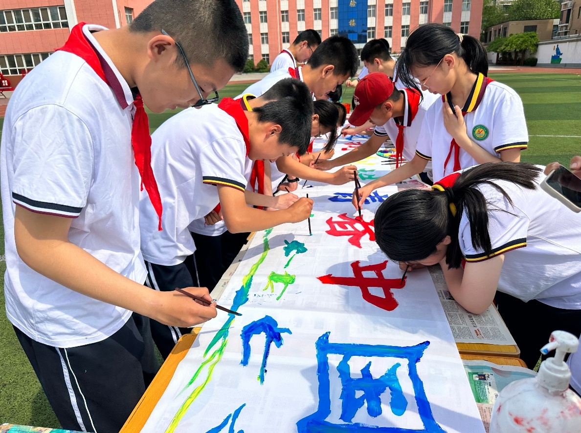 分享会结束后,队员们移步至操场。在这里,他们拿起画笔,在巨大的画布上绘制出“青春之我 创造青春中国”。以青春绘就梦想底色,用画作展望美好未来。