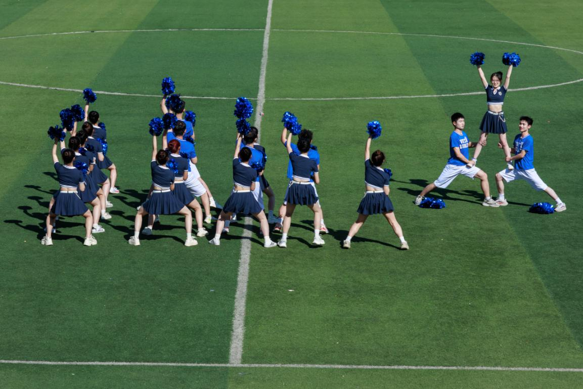 4月23日,华北电力大学举行“青春爱运动、健康强中国”啦啦操比赛。各院系学子组成的啦啦操代表队身着统一服装,脸上洋溢着自信的笑容,他们将高跳、交叉跳、一字马等专业动作与音乐完美融合,踩着乐曲的鼓点飞转腾挪,灵动的身姿在绿茵场上散发无限活力,充分利用口号、队形变换等多彩元素,展现青年风采。