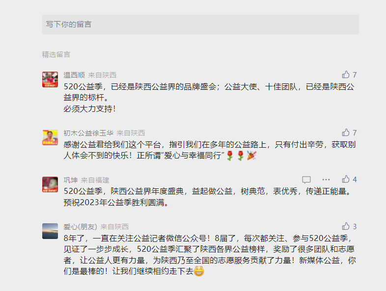 宣传选树的陕西五十佳志愿者,送上520致敬礼包。