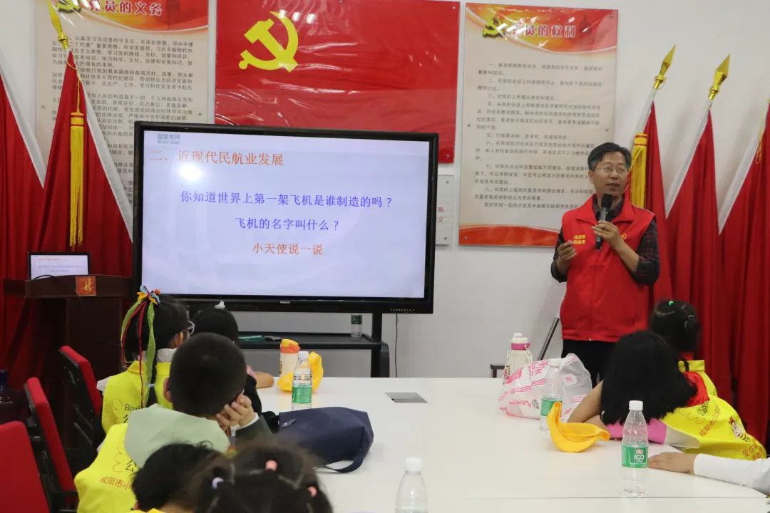 小天使唐浩然同学说:”莱特兄弟制造的飞机称为飞行者1号。“郭恩伟为小天使讲解中国近现代民航业发展,中国客机的发展历程:购买、仿制、组装、购买西方飞机、创新发展研究制造先进飞机。接下来,郭恩伟为小天使普及民航安全知识。讲解了多起飞机事故,包括飞机故障引起的、人为失误引起的、犯罪分子和恐怖分子引起的、没有明确线索失踪的等等空难。郭恩伟还为小天使们讲解了未来民航业发展。客机的发展:更大、更远、更快、更安全,更低成本、绿色低碳。郭恩伟继续提问道:“如果你是设计师,你想造什么样的飞机?”