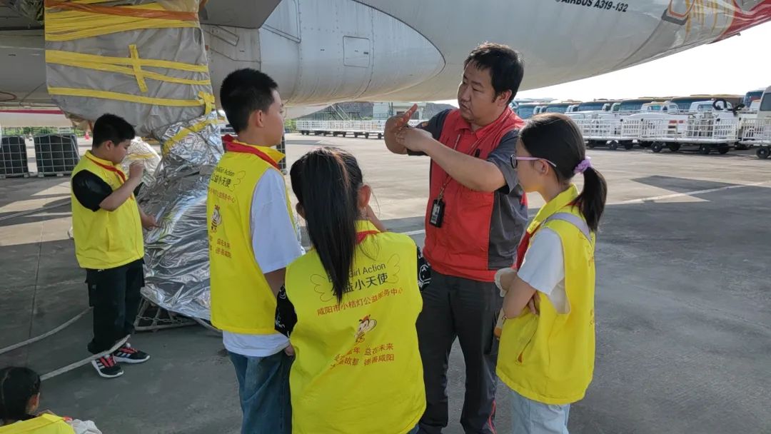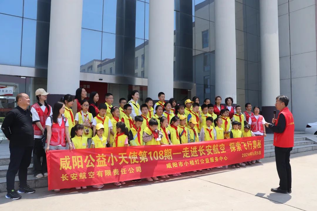 为了激发小天使们对航空飞行的热爱,提升主动探索科学的潜能和学习热情,2024年5月5日,咸阳市小桔灯公益服务中心组织37名公益小天使前往长安航空公司开展职业体验参观研学活动。
