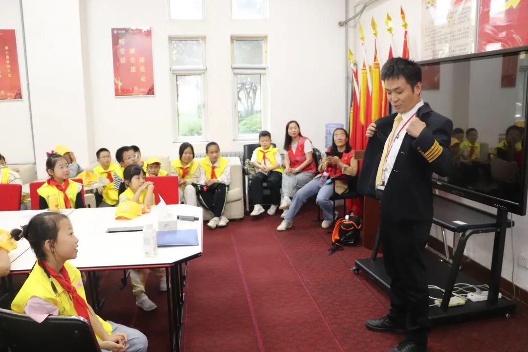 机长樊小博说:”乘客必须要提前45分钟办理完登机牌,因为飞机需要进行驾驶规划,提前要按照乘客人数做相关准备,为了飞机不延误,大家一定要提前15分钟到达飞机前。“家长志愿者谢豫提问道:”飞机报废之后去哪里呢?“