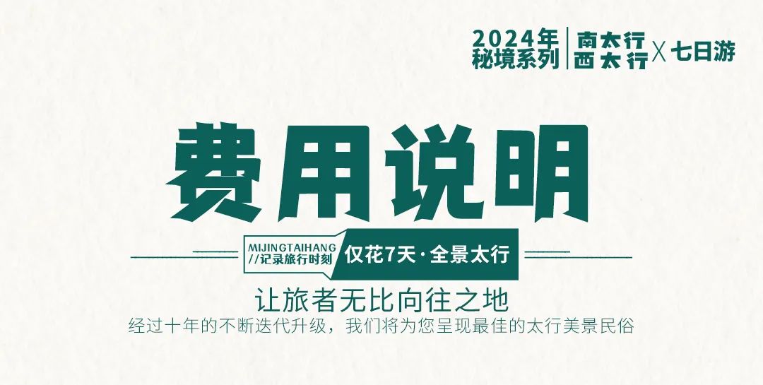 4、全程门票费(万仙山景区门票+交通,八泉峡门票),凭有效证件产生门票减免的,将退还相关费用哦;