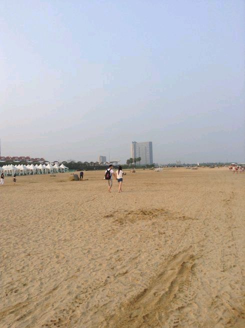 阳光洒落,温暖如许,分享爷孙欢畅。足迹圈圈,留痕海岸,印刻开心状。笑声阵阵,随风飘散,传遍金山边港。愿时光、长留不去,此情再访。