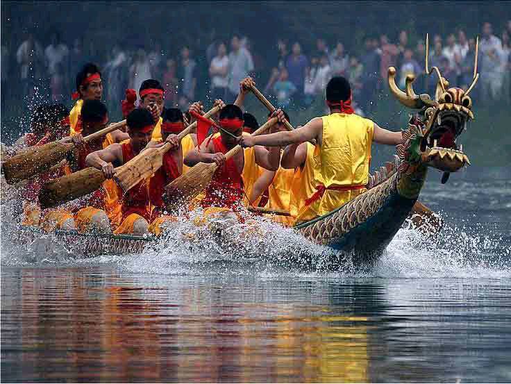 千年风雅,流传华夏。拜屈原,龙舞江边。鼓鸣喧号,齐颂先贤。好·太平日,万民乐,向清天。