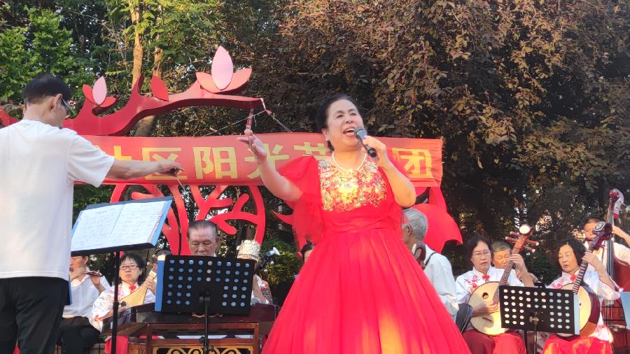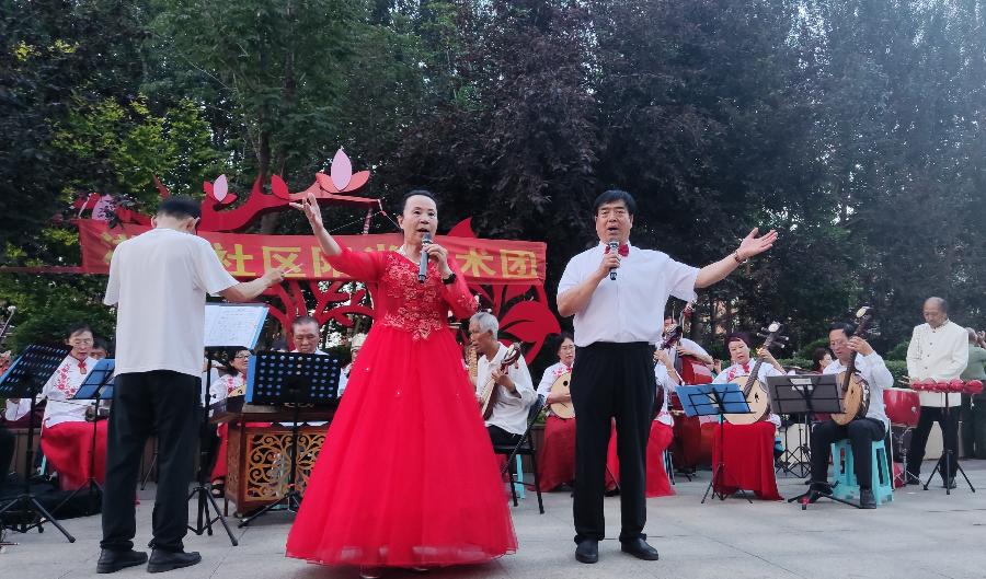 演出由红歌联唱《党旗飘扬》,拉开了演出的序幕。整台演出分为“薪火相传 初心不改”“立足岗位 建功今朝”“踔厉奋发 扬帆起航”三个篇章,节目演出之精彩获得居民们热烈的掌声,艺术团团长于淑贤演唱的《祖国之恋》把演出推向了高潮。